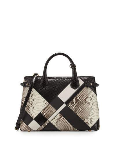 check canvas sides. Rolled top handles with keeper strap, 4" drop.
