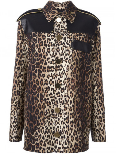 epaulettes on the shoulders, leather panels, a leopard print, a chest