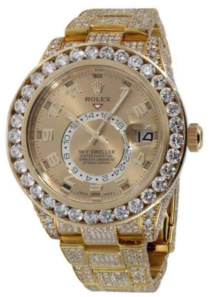 DetailsRolex Sky-Dweller 18K Yellow Gold Champagne Arabic Dial Diamond 42mm Watch Features: