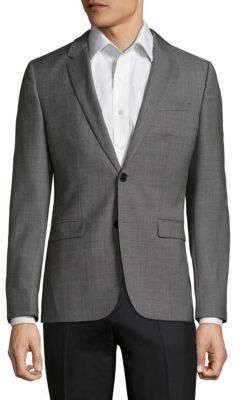 texturing elevates this urbane wool jacket. Notch lapels. Front