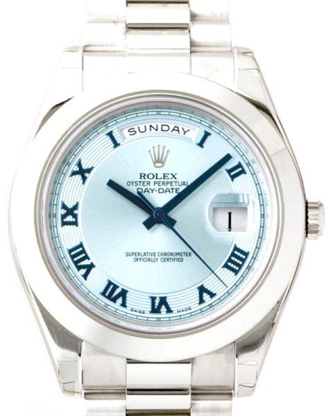 DetailsRolex President Day Date II 218206 Platinum Ice Blue Roman Dial 41mm Watch Features: