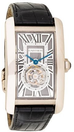 white gold 32mm x 52mm Cartier Tank Américaine watch featuring a manual