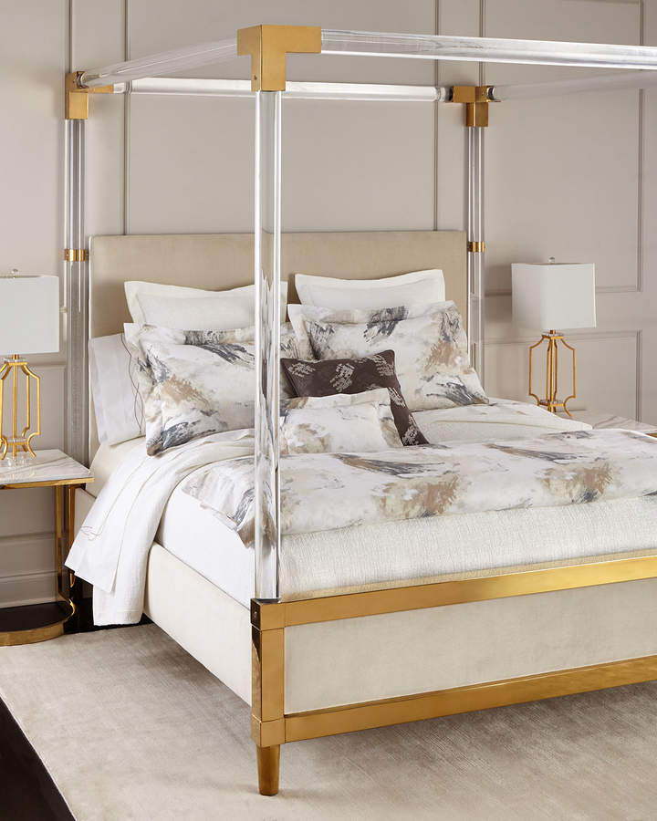 - Acrylic posts and canopy with brass-plated metal connectors.