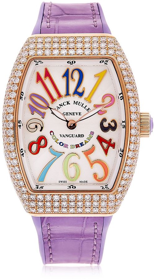with pavè diamonds. Hand-stitched alligator and rubber band. Quartz