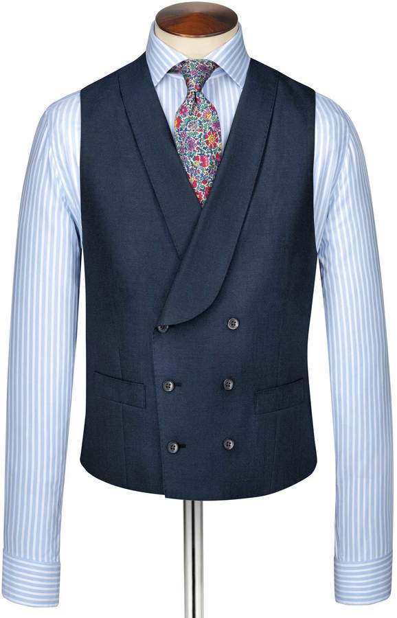 Blue Adjustable Fit British Panama Luxury Suit Wool Vest Size w36 by Charles Tyrwhitt