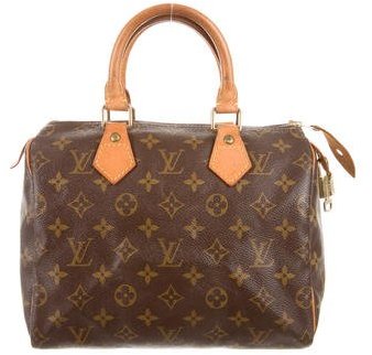 and tan monogram coated canvas Louis Vuitton Speedy 25 with brass
