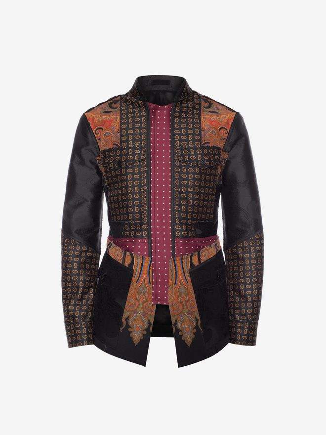 patchwork field jacket with polka dots, mini and maxi paisley prints