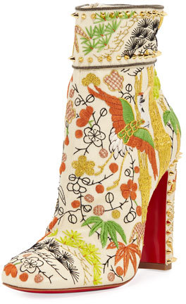 Louboutin "Bamboot" ankle boot in intricately embroidered grosgrain