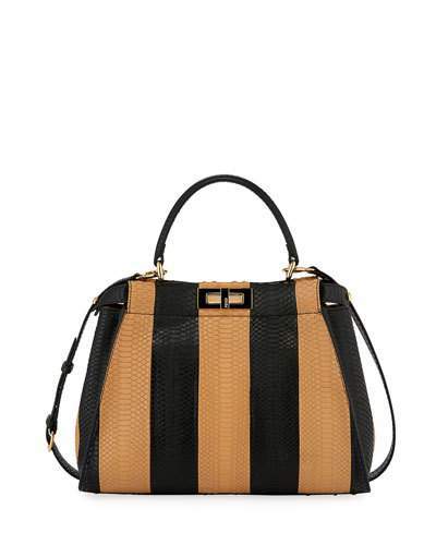 medium satchel bag in Pequin dyed calf (New Zealand) striped snakeskin.
