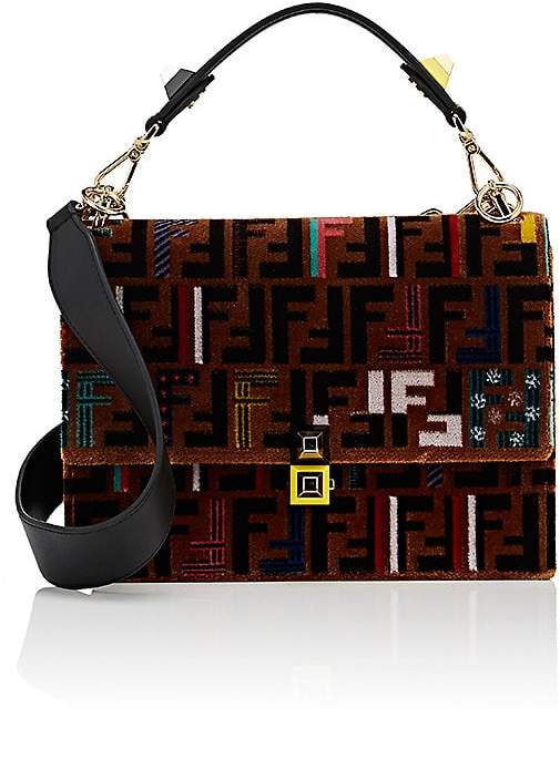 of brown and multicolored logo-print velvet, Fendi's Kan I shoulder bag