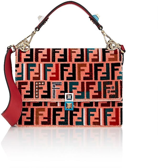 of pink and multicolored logo-print velvet, Fendi's Kan I shoulder bag
