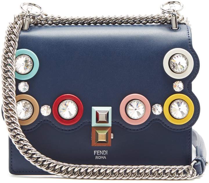 this navy-blue calf-leather Kan I bag captures Fendi's sophisticated