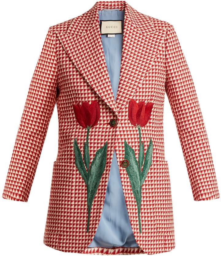silhouette with coordinating tulip motifs embroidered across the front