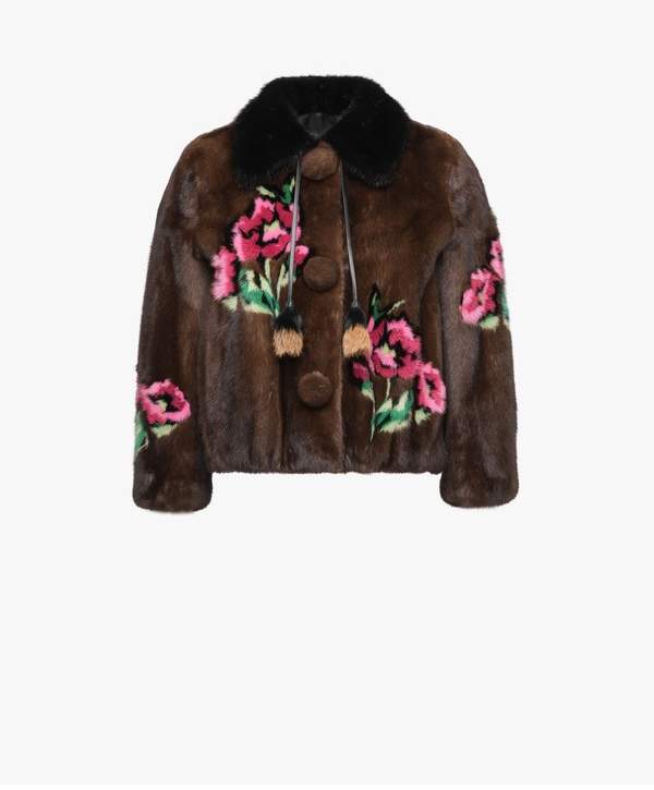 Front button closureFloral intarsiaWelt pocketsGarment length: 52 cmMaterial: 100% mink Sizes h. 20.5 inches