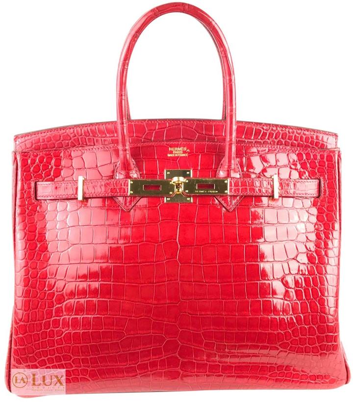 BIRKIN 35CM BRAISE RED SHINY POROSUS CROC CROCODILE GOLD HARDWARE.