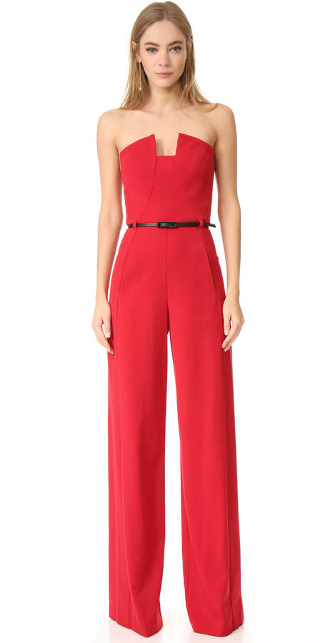 jumpsuit. Boning structures the notched bodice, and an optional skinny