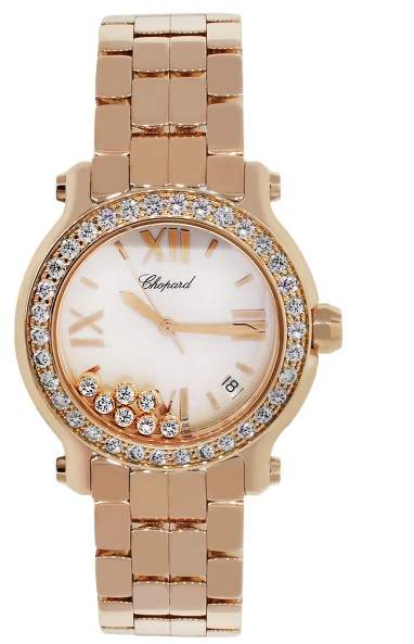 Chopard Happy Sport 277481 18K Rose Gold Mother Of Pearl Diamond Dial 36mm Unisex Watch Features: