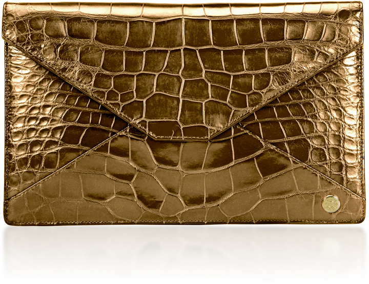 envelope-style clutch opens to a croc lined interior with a zippered