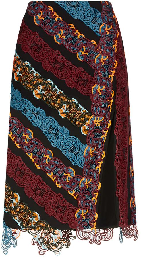 A-line skirt by Versace boasts a vibrant and detailed design. Expertly