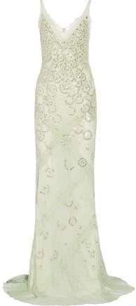 Roberto Cavalli mint gown- Corded lace- Metallic sequin and bead