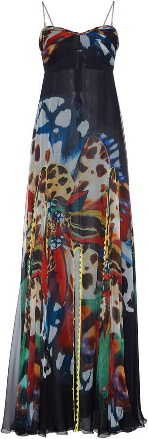 Rendered in silk this **Roberto Cavalli** dress features a gathered bodice empire silhouette and maxi length.