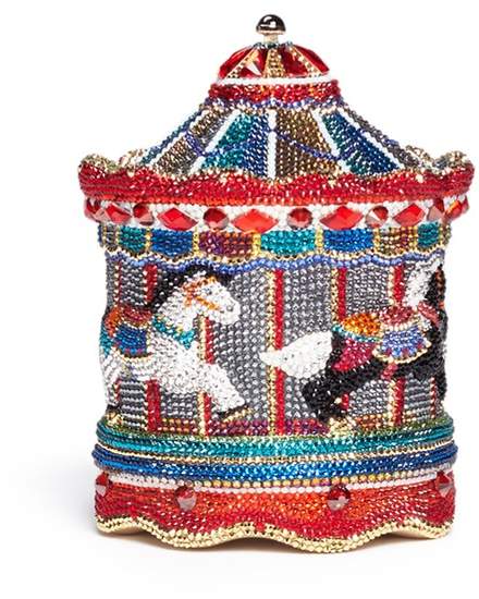 A nostalgia-inspired accessory for the evening edit, this minaudière from Judith Leiber sends you down memory lane with its carousel design. Beautifully crafted from colourful hand-applied Austrian crystals, this holdall is lined in lambskin leather to keep your evening essentials safely stowed.