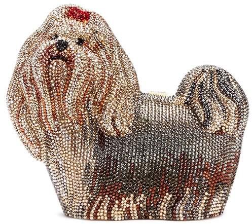 Dazzle at your next after-hours event with this Perla Charlie minaudière from Judith Leiber. Depicting a lovely little dog looking up to the skies, this three-dimensional carryall comes with a removable rolo chain shoulder strap to offer extra styling options for a variety of occasions.