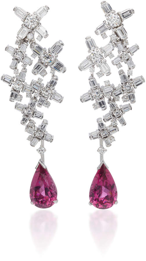 DAVIDOR Arch Florale 18K White Gold, Diamond And Rubellite Earrings